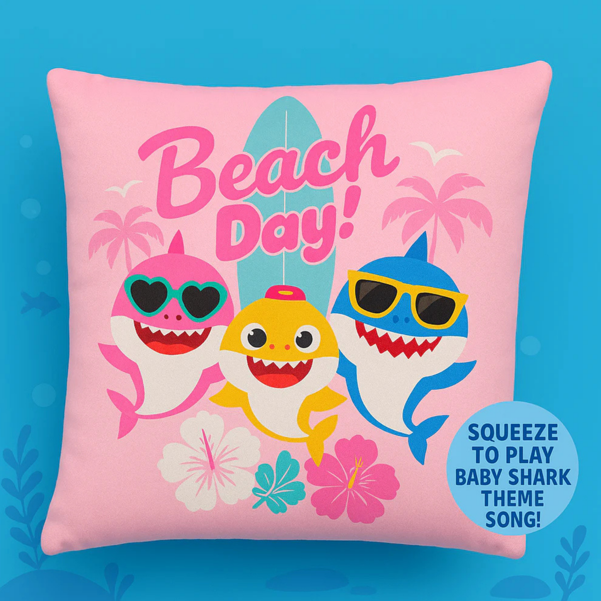 Baby Shark Musical Cushion is a soft, cuddly cushion that Sings Baby Shark Song when Squeezed.